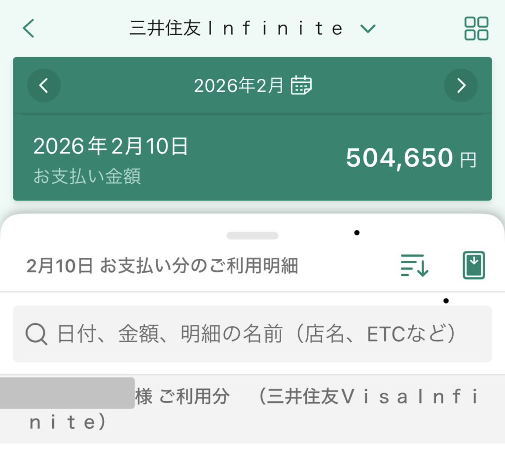 三井住友カードVisa infiniteが手元に届き、新規入会特典達成のため、決済額を三井住友カードVisa infiniteに集中させました。