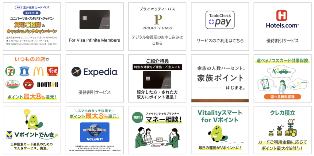 2026年2月からは「リワードアップVisa infinite」のポイント制度が新たに加わり、Expediaなどの対象店舗での三井住友カードVisa infiniteの利用で最大10%のポイント還元を受けることができるようになりました。