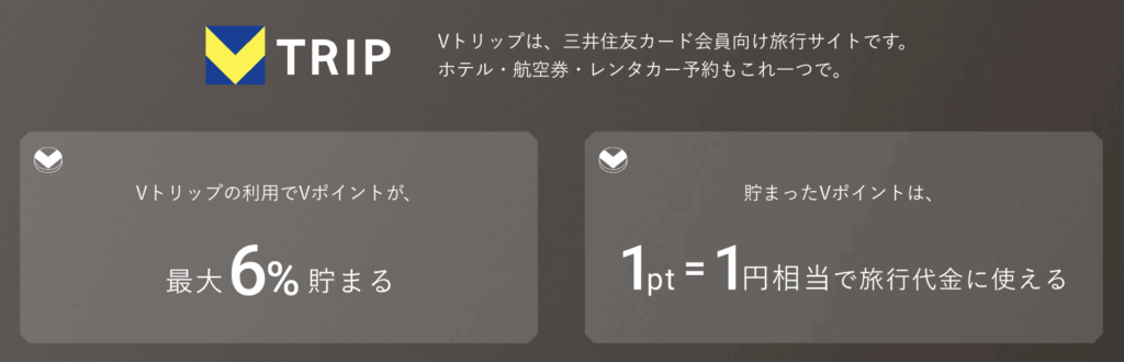三井住友カードVisa infiniteは、三井住友カード会員向けの旅行予約サイトVトリップでの旅行予約で最大6%のポイント還元を受けることができます。