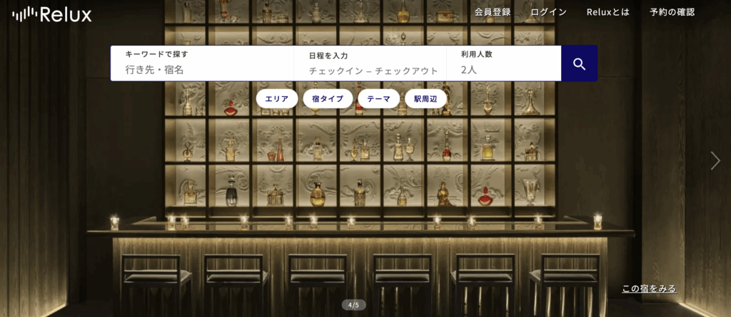 三井住友カードVisa infinite会員は、高級宿・ホテル予約サイト「Relux(リラックス)」でも、通常価格の5%優待を常に受けることができます。