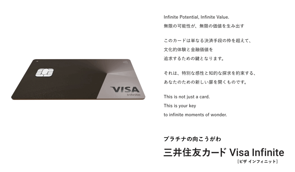 この機会をお見逃しのないよう、三井住友カードVisa infiniteをお申し込みください。