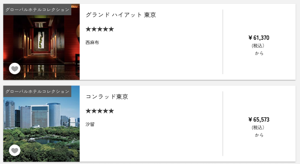 国内では、コンラッド東京、ザ・ペニンシュラ東京、グランド ハイアット 東京、ウォルドーフ・アストリア大阪などの名門ホテルが対象となっており、三井住友カードVisa infiniteを保有しているだけで滞在内容が大きく向上します。