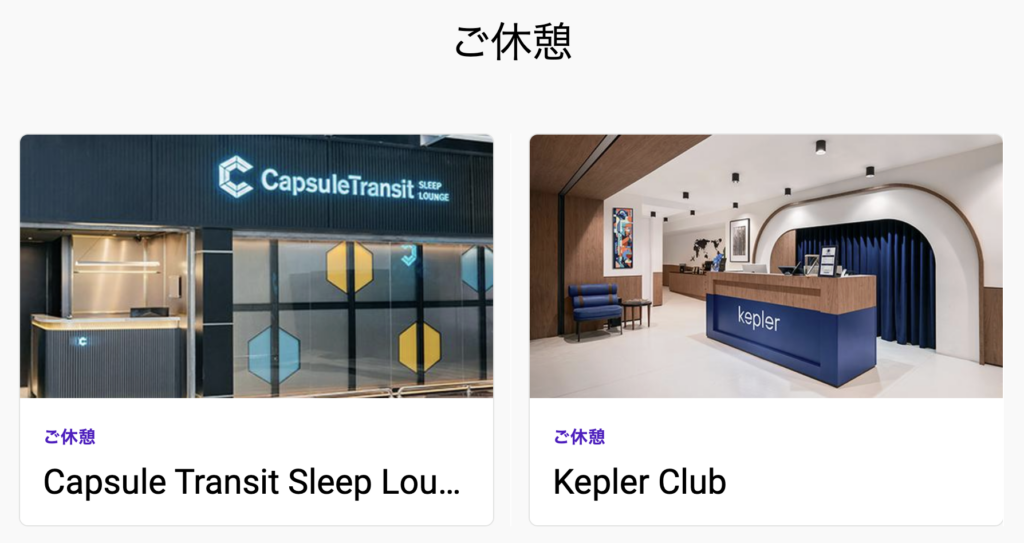 | 空港ラウンジ | 国内主要空港+海外一部 | 国内主要空港+海外一部 | 国内主要空港 |
