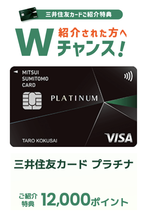 さらに、当ブログからの紹介入会で三井住友カードVisa infiniteをお申し込みいただくと、加えて20,000円相当の紹介ポイントが付与されます。